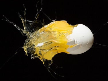 Grappig is dat de oorzaak van deze column heel erg anders ligt. Het laatste wat ik uit mijn boodschappenkarretje haal en in de auto wil leggen is een doos met 10 prachtige biologisch verantwoorde eieren in de maat L. Prachtig glimmend in hun mooie schaaltje omringd door een stevige doos. Precies tussen kar en kar gingen ze aan diggelen. Aan gruzelementen zijn ze alle tien! En ik kan zeggen wat ik wil, maar ze bleven keurig in hun stevige doos gebarsten liggen zijn. Geen geknoei op de parkeerplaats, alleen in de doos zelf was het een zooitje.